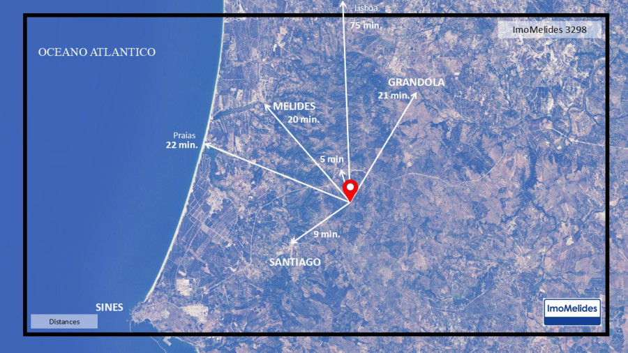 Beaches, Melides, Santiago do Cacém, and Grândola are all within 20 minutes.