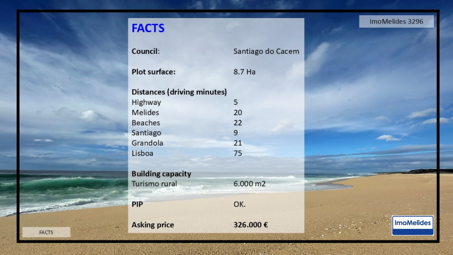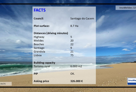 Located in the municipality of Santiago (not Grândola), where tourist projects near the coast are still possible.