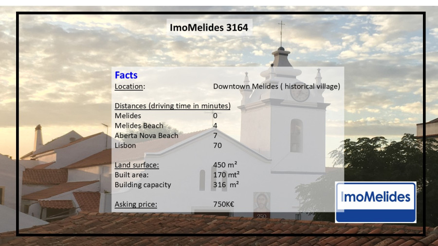 Prime urban plot located at the eastern edge of the historic village of Melides. This property features a charming old house, a private courtyard, and a recently renovated wine cellar.